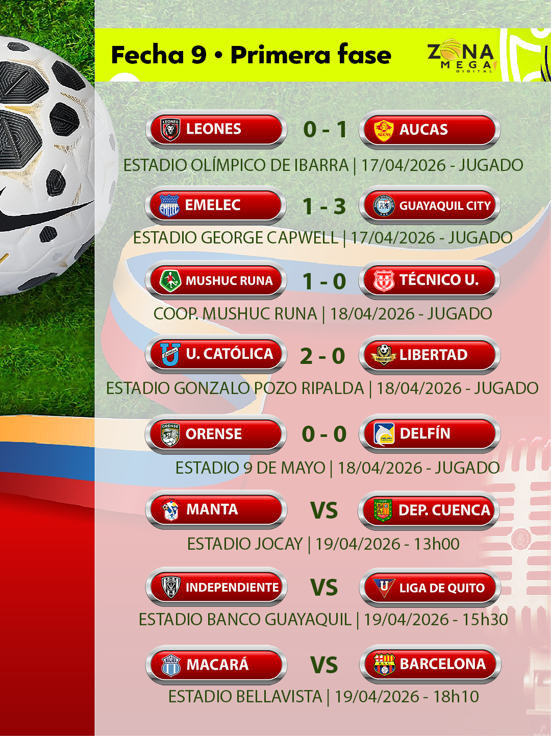 | Con un estadio Monumental, con buena asistencia de aficionados la gran mayoría, “toreros” por la fecha # 8 de la fase Inicial de la Liga Ecuabet 2026, se enfrentaron Barcelona Sporting Club y Leones FC. |