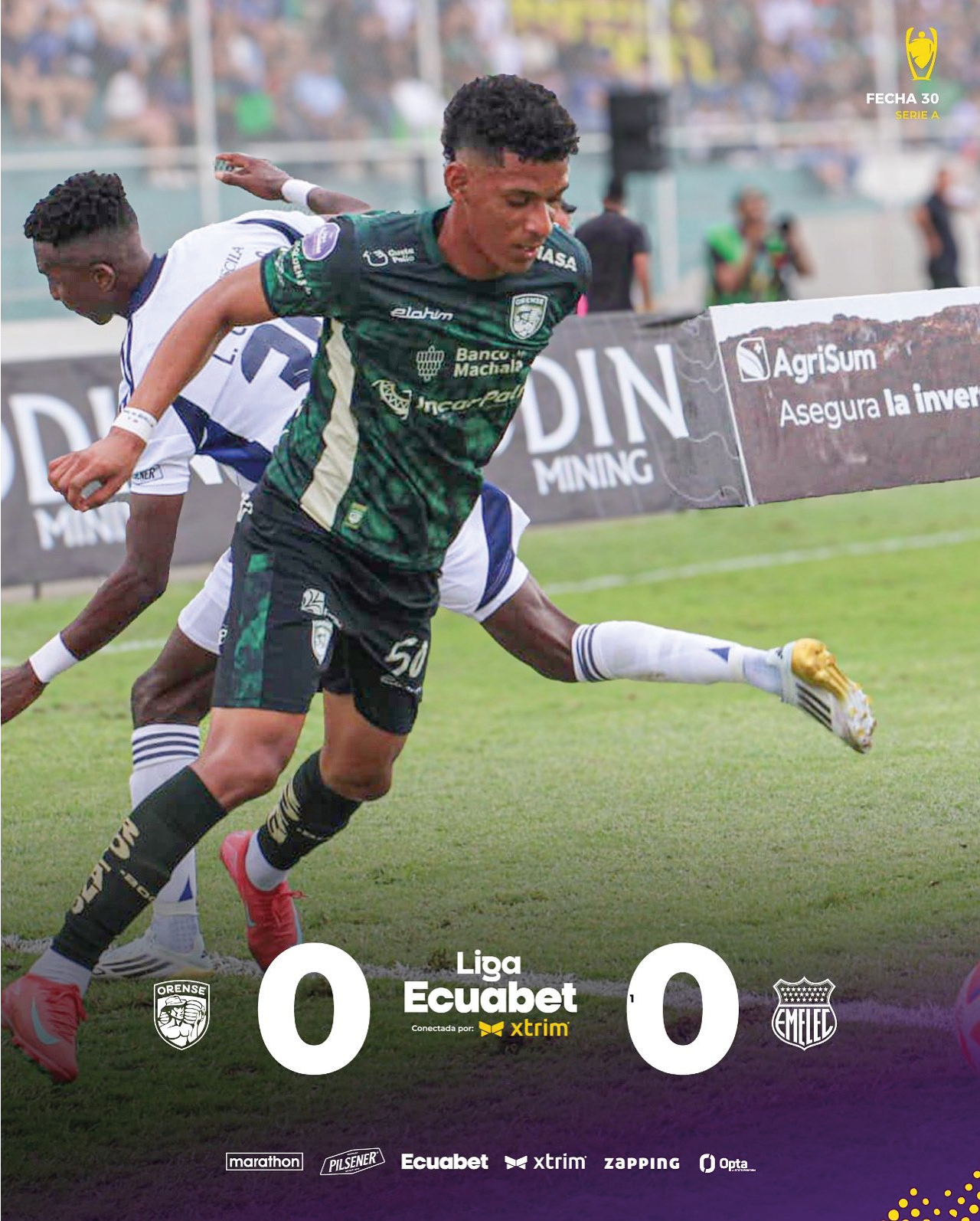 En el Estadio 9 de mayo de la ciudad de Machala por la Fecha #30 de la Liga Ecuabet 2025 el Club Sport Emelec empató a 0 goles con el cuadro de Orense y selló su clasificación al Hexagonal.